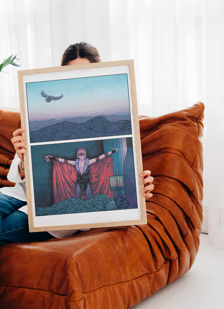 Rêve, fantasme, provocation ou névrose, Mathieu nous embarque dans le fantastique de ses eaux troubles. Il collabore régulièrement avec Télérama, Le 1 hebdo, Sogood, Society, Marie Claire, la revue Mouvement, la revue Ballast... Lauréat du prix jeunes talents des agents associés 2018 catégorie illustration. il vit et travaille dans la Drôme.