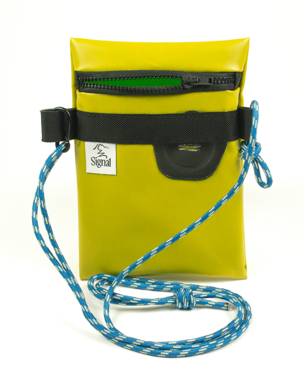 Imaginées par SIGNAL à partir des rebus fournis par l'entreprise Mekong (26400 Crest), ces sacoches en toile de packraft confectionnées par La sacoche filante mettent à l'abris des éclaboussures vos effets personnels lors de vos activités au bord de l'eau.