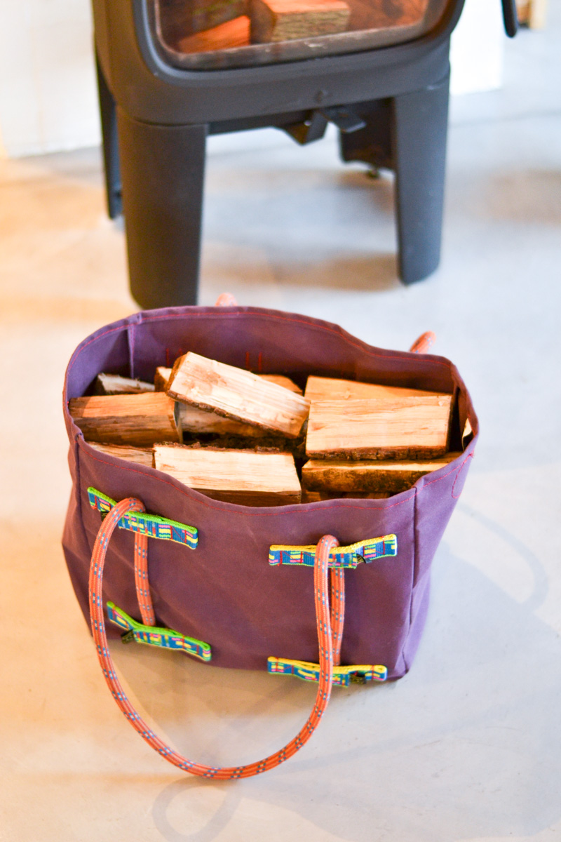 Imaginés par SIGNAL à partir des rebus et fin de stock de toiles de stores extérieurs, ces sacs confectionnés par Les toiles du berger (Crest 26400) sont très solides et accueilleront vos bûches de 30 ou 45 cm.